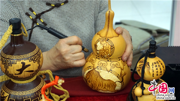 葫蘆烙畫(huà)又稱(chēng)燙畫(huà)葫蘆、火筆畫(huà)葫蘆,是國(guó)家非物質(zhì)文化遺產(chǎn)。做葫蘆烙畫(huà)得用烙鐵當(dāng)筆,燒熱后在葫蘆表面熨出烙痕作畫(huà)。烙畫(huà)和葫蘆融為一體,能長(zhǎng)久保存,可以作為工藝品收藏。其中,非遺傳承人陶瑞珍的葫蘆烙畫(huà)形成了獨(dú)特的藝術(shù)風(fēng)格。