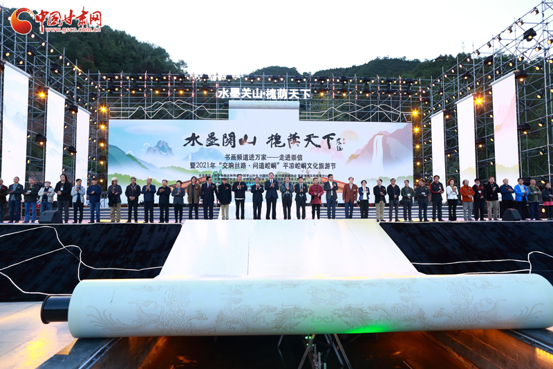中國(guó)甘肅網(wǎng)5月20日訊(本網(wǎng)記者 靳佩佩 文/圖)5月19日晚,2021年“交響絲路·問(wèn)道崆峒”平?jīng)鲠轻嘉幕糜喂?jié)開(kāi)幕式暨“水墨關(guān)山·槐蔭天下”書(shū)畫(huà)頻道進(jìn)萬(wàn)家——走進(jìn)崇信主題晚會(huì)在崇信縣龍泉廣場(chǎng)啟幕。