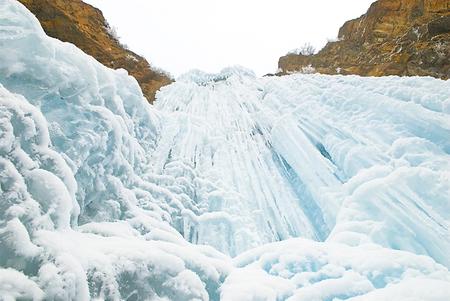 往日飛流直下的山泉瀑布,在冬日里幻化成一排排幾十米寬的銀瀑,從崖壁上垂瀉而下。山谷下,石壁間,清一色的玉白,宛如一座巨大的冰簾,順著崖壁的走勢,或凸出或凹進(jìn),層層疊疊將整個峽谷環(huán)抱起來。冰瀑、冰簾、冰柱、冰舌,有的相銜相連,有的各自為政,交替排列。如雕似塑,似瑪瑙,像琉璃,晶瑩透亮。冰下暗流涌動,嘩嘩的水聲,由高到低在冰下輕響。一時(shí)間,仿佛置身于潔白無瑕的童話世界。朋友不住地贊嘆:“這才是真正的冰清玉潔!”