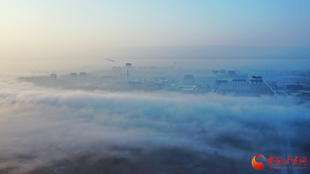 2月8日清晨,甘肅張掖市高臺縣黑河國家城市濕地公園上空霧浪翻滾,虛無縹緲,恍如天宮仙境,呈現(xiàn)出海市蜃樓般的云海奇觀,在陽光的照射下,格外美麗。由于多年來黑河生態(tài)治理,冬天封凍,加之近日大范圍的降雪低溫天氣,黑河的水面上經(jīng)常霧氣蒸騰,兩岸的樹木玉樹瓊花,形成霧凇景觀,如同童話世界里的仙境一般圣潔,令人心曠神怡。