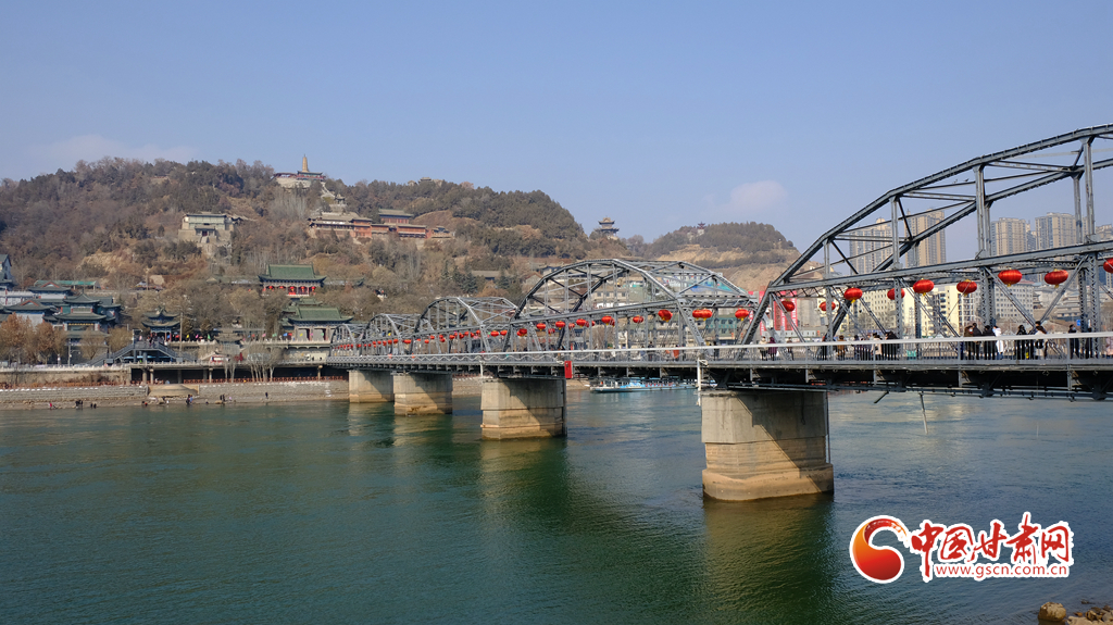 中山橋上大紅燈籠和黃河碧波交相輝映