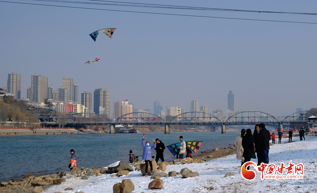 新春佳節(jié),早春時(shí)光,2月7日,雪后天晴,市民走出家門來(lái)到黃河之濱放風(fēng)箏。