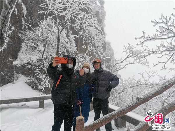 “哇! 好漂亮??!”2月17日,安徽黃山風(fēng)景區(qū)再次迎降春雪,驚羨慕名前來賞雪的游客。