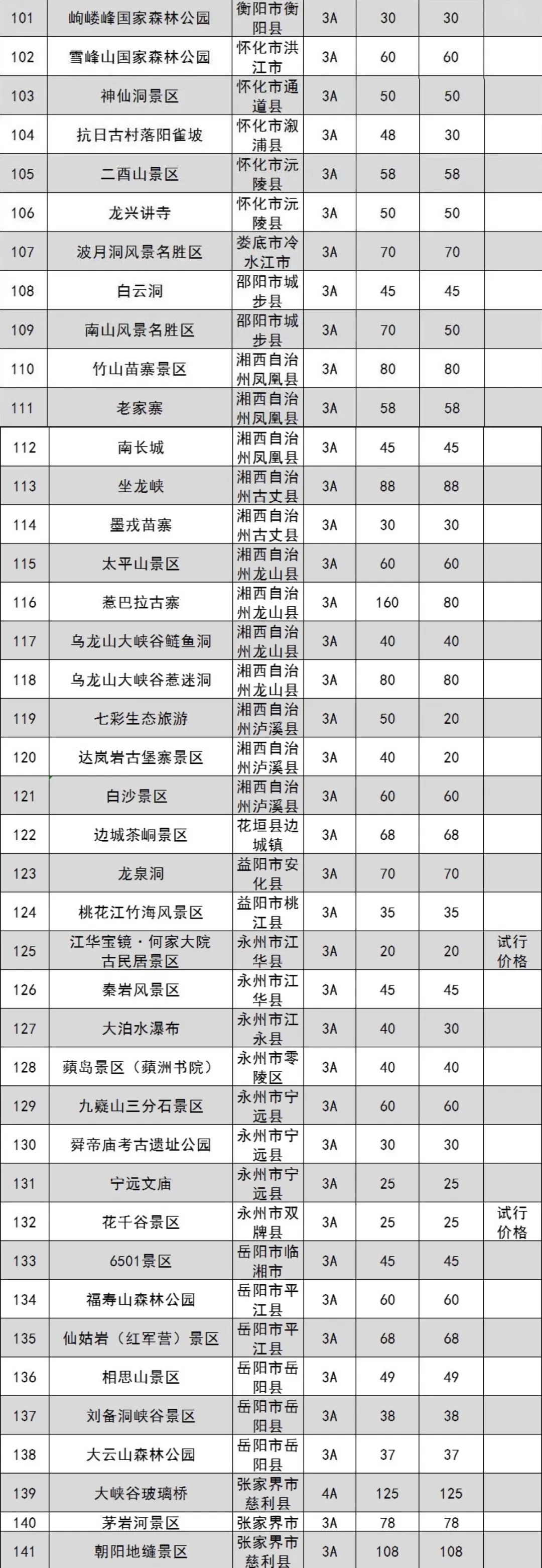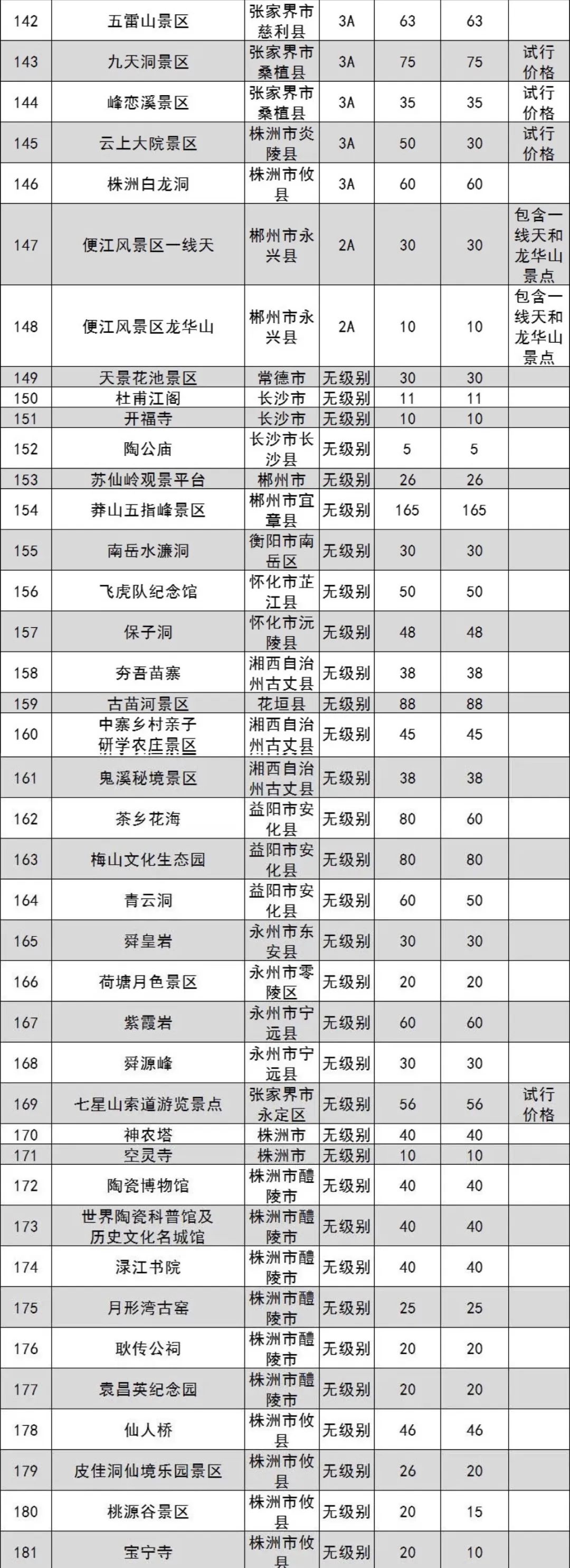 原標(biāo)題:湖南省政府管價(jià)景區(qū)2022年門票出爐 共181個(gè)