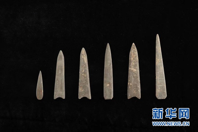 這是甘肅慶陽(yáng)南佐遺址出土的涂有朱砂的石鏃。(圖片由南佐遺址聯(lián)合考古隊(duì)提供)