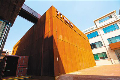 沿著園區(qū)里迂回旋轉(zhuǎn)的鋼梯來(lái)到樓頂,眼前豁然開(kāi)朗——與園區(qū)一街之隔有中國(guó)美術(shù)館、三聯(lián)書店,向西是北大紅樓舊址,向南是北京人民藝術(shù)劇院,向北則是中央戲劇學(xué)院。“我們?cè)谡{(diào)研中發(fā)現(xiàn),周邊戲劇、影視資源非常豐富,于是考慮將園區(qū)定位與東城區(qū)推進(jìn)‘戲劇之城’建設(shè)發(fā)展的方向相契合。”77文創(chuàng)園運(yùn)營(yíng)方、東方道樸公司總經(jīng)理李明說(shuō)。