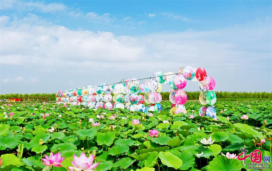 七八月份,正是荷花競(jìng)相盛開(kāi)的季節(jié),寧夏沙湖景區(qū)利用淺灘和鹽堿地種植觀賞性荷花,在湖東游線深處打造了西北沙漠旁的“萬(wàn)畝荷花苑”,為景區(qū)夏日增添一抹韻味。成片的荷花在西北的驕陽(yáng)下熠熠生輝,構(gòu)成“接天蓮葉無(wú)窮碧”的塞上秀美荷塘景觀。