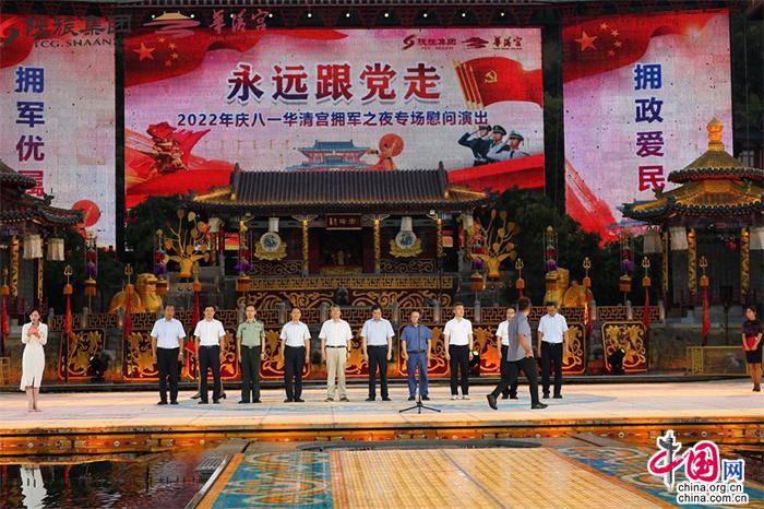 7月31日,陜西華清宮景區(qū)舉辦“永遠(yuǎn)跟黨走·2022年慶八一華清宮擁軍之夜專(zhuān)場(chǎng)慰問(wèn)演出”。