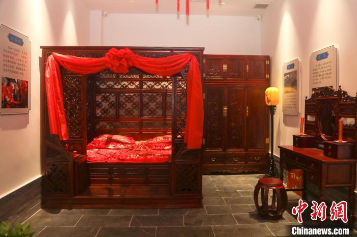 圖為博物館內(nèi)布置的中式傳統(tǒng)風(fēng)格新婚洞房?!⒘?nbsp;攝