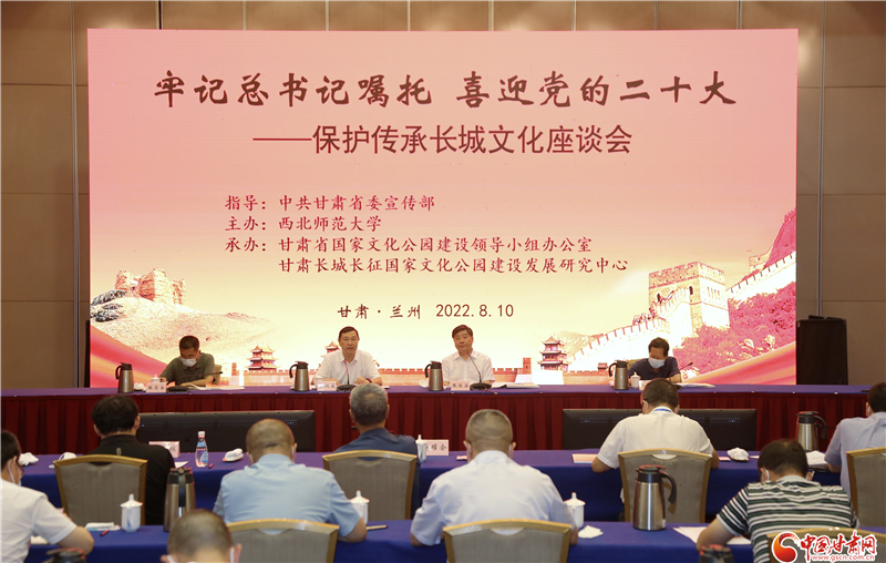 中國甘肅網(wǎng)8月10日訊(本網(wǎng)記者 程健 宋芳科)8月10日下午,由中共甘肅省委宣傳部指導(dǎo),西北師范大學(xué)主辦,省國家文化公園建設(shè)領(lǐng)導(dǎo)小組辦公室、甘肅長城長征國家文化公園建設(shè)發(fā)展研究中心承辦的“牢記總書記囑托 喜迎黨的二十大——保護(hù)傳承長城文化座談會”在蘭召開。省委宣傳部副部長李潤強出席并講話。西北師范大學(xué)黨委書記、甘肅長城長征國家文化公園建設(shè)發(fā)展研究中心主任張俊宗主持座談會并致辭。