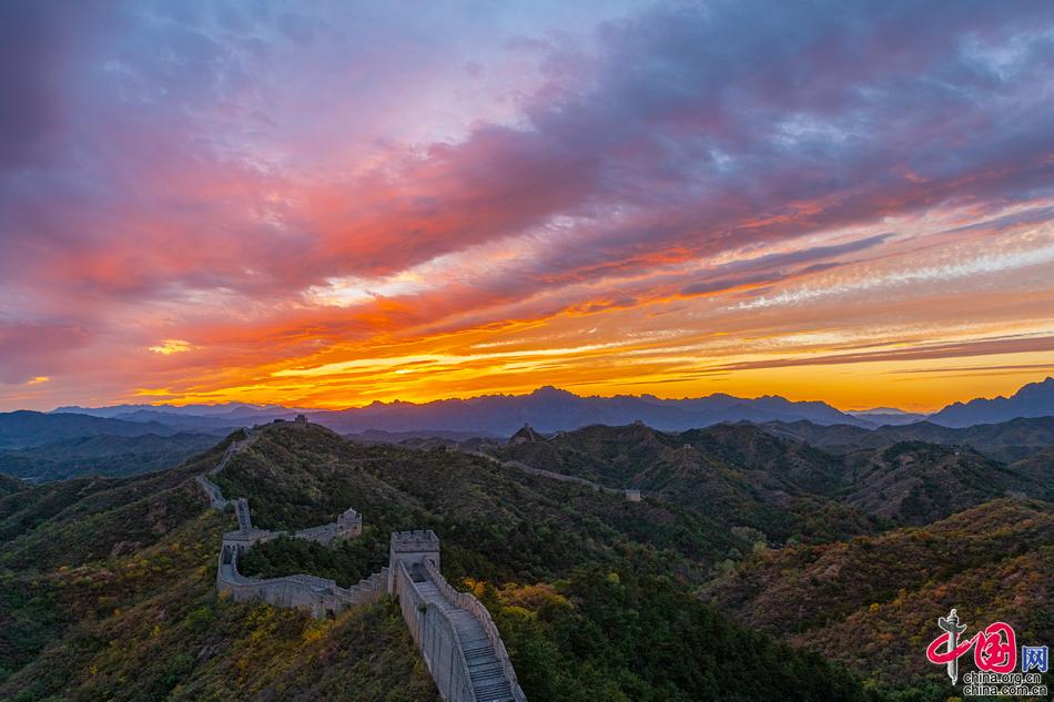 山巒起伏的古老長城層林盡染,令人驚艷。