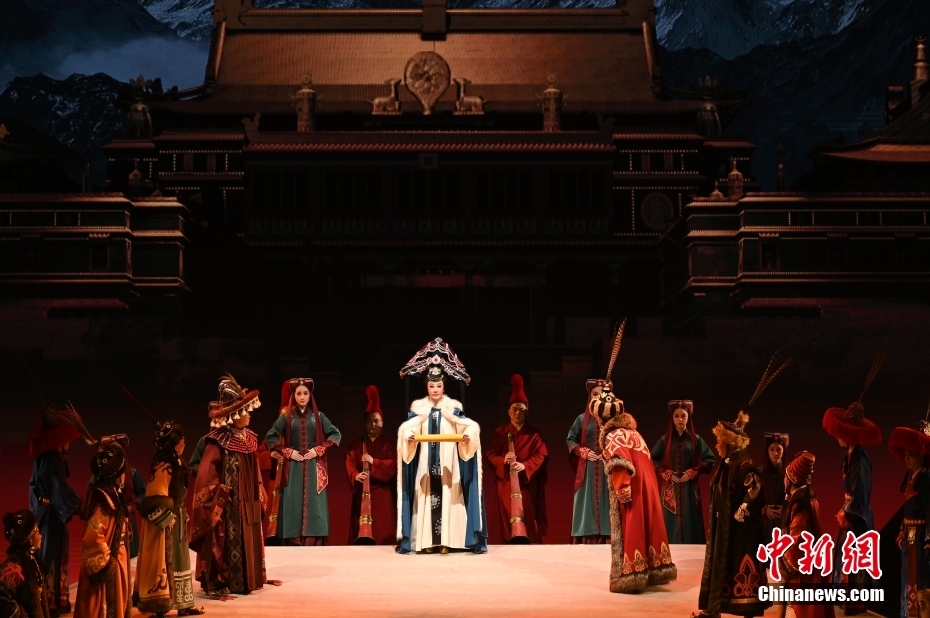 10月11日晚,大型新編歷史粵劇《文成公主》在廣東廣州大劇院首演。該劇以文成公主和親進(jìn)藏的歷史事件為依據(jù)創(chuàng)作,講述了文成公主堅守吐蕃四十年,促進(jìn)了吐蕃經(jīng)濟(jì)、文化的發(fā)展,加強(qiáng)了漢藏人民的友好關(guān)系。中新社記者 陳楚紅 攝