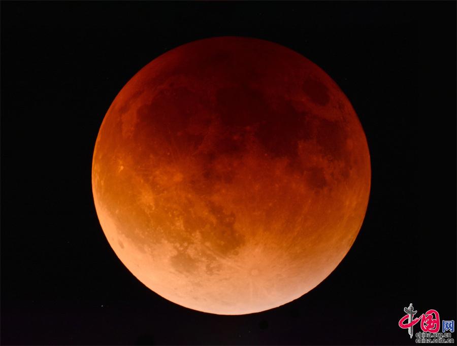 據(jù)了解,月亮初升時(shí)分,就缺了一塊,略顯紅色;隨著月亮的升高,月缺越來越嚴(yán)重也變得越來越紅,最后變成了一個(gè)完整的紅月亮,被稱為“血月”。