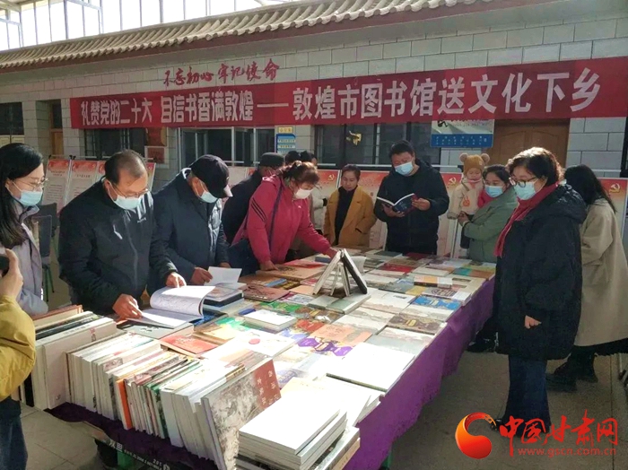 中國甘肅網(wǎng)11月15日訊 (本網(wǎng)記者 張?zhí)m琴)為了深入學(xué)習(xí)宣傳貫徹黨的二十大精神,近日敦煌市圖書館組織開展“禮贊黨的二十大,自信書香滿敦煌”送文化下鄉(xiāng)活動受到當(dāng)?shù)厝罕姎g迎。據(jù)了解,活動將在敦煌市各鄉(xiāng)鎮(zhèn)持續(xù)進行,通過黨的二十大主題圖片展和敦煌精品圖書展相結(jié)合,利用文化惠民下基層的方式,向基層群眾宣傳黨的二十大精神,豐富人們的精神文化生活。
