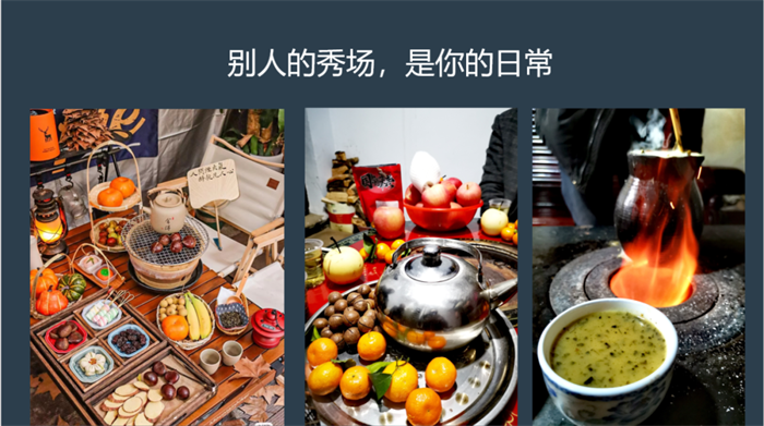 文旅產(chǎn)品的創(chuàng)新,很重要的一點(diǎn),就是“本土化文化,文化本土化”。比如,去年下半年的時(shí)候,“圍爐煮茶”突然在都市年輕消費(fèi)群體中火了,先是出現(xiàn)在露營(yíng)地,三五成群的年輕人圍著炭燒爐,煮茶、烤紅薯、烤水果、聊天,人均花費(fèi)數(shù)百元不等。后來(lái)逐漸衍生到民宿、酒店,春節(jié)期間,家庭中的“圍爐煮茶”也興起,這似乎又是一項(xiàng)傳統(tǒng)的回歸。