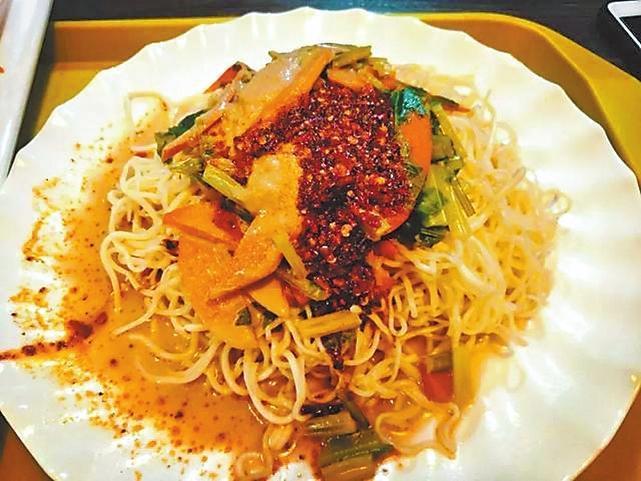 涼州涼面挑起來筋道,落在碗里松松散散,黃澄澄的像一窩金絲,澆一勺醋鹵,更是錦上添花。