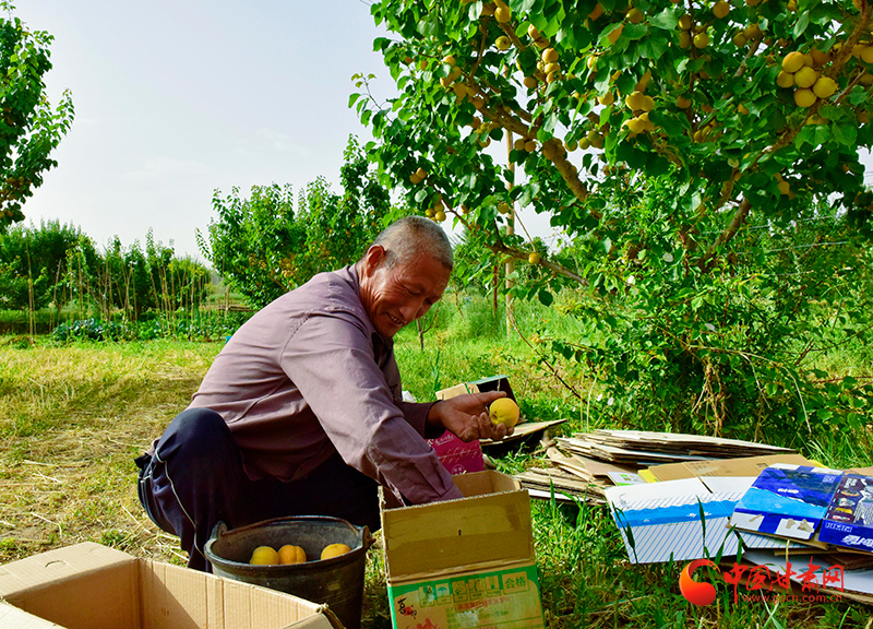 楊建國對采摘的大接杏進(jìn)行裝箱
