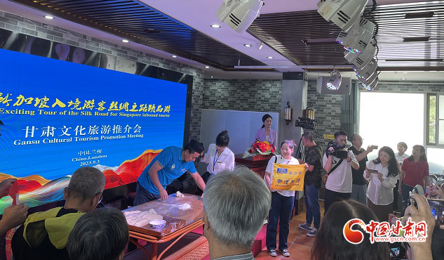 推介會(huì)上,播放了“交響絲路·如意甘肅”文化旅游形象宣傳片。甘肅文化和旅游推介大使王建萍向新加坡賓客詳細(xì)介紹了甘肅多元且極富特色的文化旅游資源,深深地激發(fā)了他們對(duì)甘肅的向往與喜愛(ài)之情。蘭州拉面師傅為大家現(xiàn)場(chǎng)表演了特色非遺美食“蘭州牛肉面”,精彩的表演引得現(xiàn)場(chǎng)不時(shí)爆發(fā)出陣陣掌聲。期間,新加坡南方藝術(shù)研究會(huì)合唱團(tuán)還進(jìn)行了合唱表演。