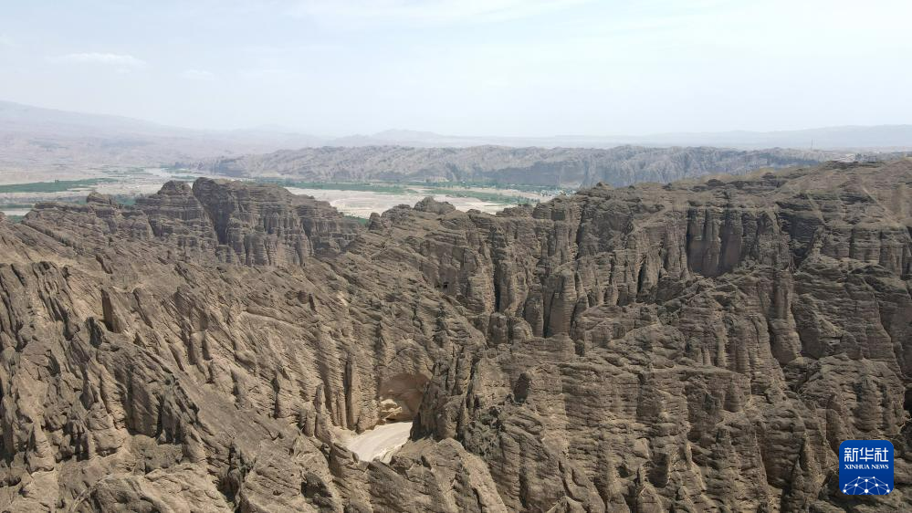 這是位于甘肅省白銀市景泰縣中泉鎮(zhèn)龍灣村的黃河石林景觀。黃河石林千峰競奇、峽谷蜿蜒,與黃河遙相呼應(yīng),形成山環(huán)水轉(zhuǎn)、動靜結(jié)合的自然奇觀(7月11日攝,無人機(jī)照片)。新華社記者 方欣 攝