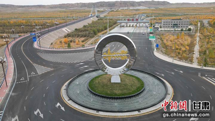 圖為位于金塔南收費(fèi)站入口前,帶有胡楊和古佛塔元素的“天空之鏡”建筑。(無人機(jī)照片) 九美旦增 攝