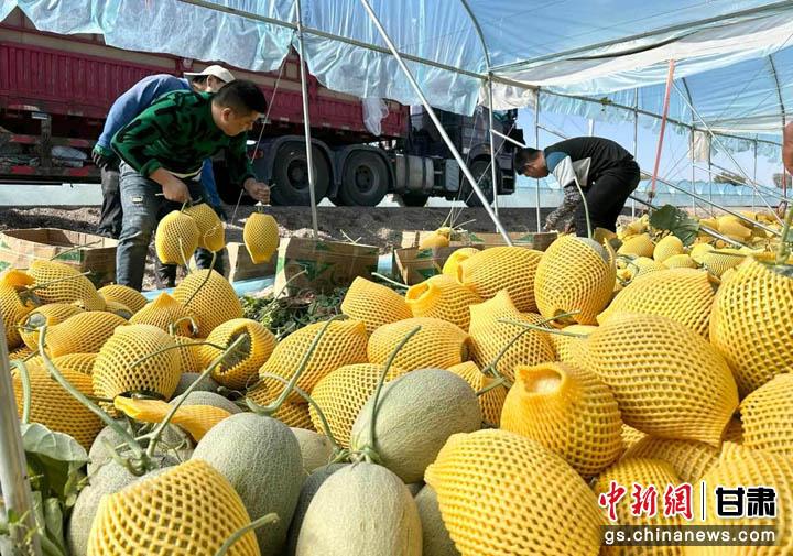 圖為金秋十月,金塔甜香蜜瓜喜獲豐收 。史靜靜 攝