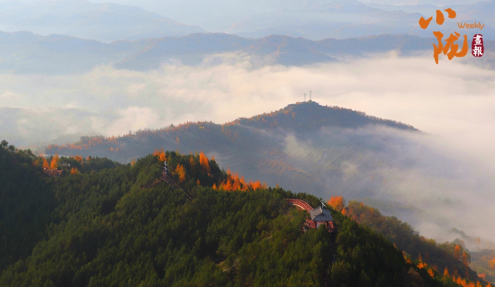 一場秋雨過后,境內(nèi)云華山呈現(xiàn)出一瀑萬頃、白浪翻滾的云海景象。