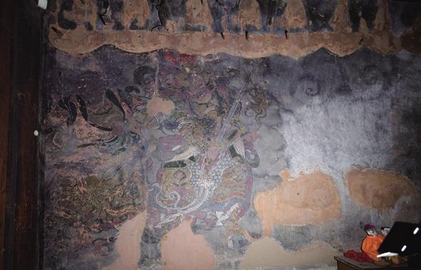 現建筑保存完好,塑像多被破壞,僅存明代懸塑七尊,塑像腳底踩踏祥云,衣帶飄逸靈動,面容栩栩如生。東西兩壁留有四位天神畫像。殿內遺留的龐、劉、茍、畢四大雷部元帥門壁畫,與門楣上方的懸塑和拱眼壁上繪畫的尊神,均是研究明代道教藝術的珍貴遺存,是當地儒、道、佛三教并存,多元文化共同發(fā)展的歷史見證,對研究土司文化具有重要價值。