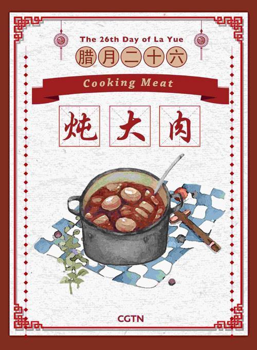 臘月二十六這天,許多家庭通常都會燉豬肉和吃豬肉。不養(yǎng)豬的家庭會去當?shù)丶匈I一大塊肉。在過去的農(nóng)業(yè)社會,人們只有在春節(jié)才能吃上肉。吃肉也代表著一年中最盛大的慶祝活動。