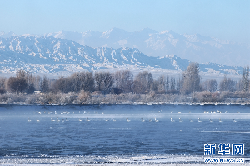 1月21日,冬日清晨,甘肅張掖黑河濕地日出如畫。一輪冉冉升起的紅日絢麗奪目,與河流、樹木、候鳥、晨霧共同構(gòu)成了一幅生態(tài)畫卷。新華網(wǎng)發(fā)(成林 攝)