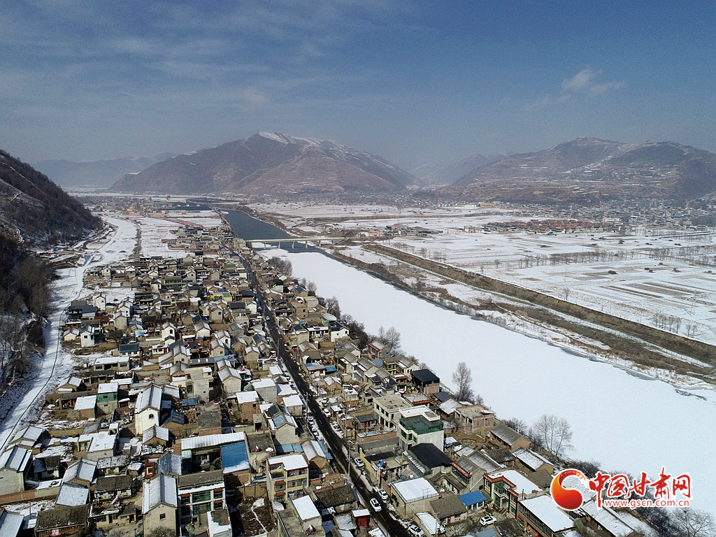 受冷空氣影響,岷縣近日迎來降雪天氣,十里鎮(zhèn)境內(nèi)銀裝素裹,村莊與洮水、山脈構(gòu)成了一幅美麗的冬景畫卷。