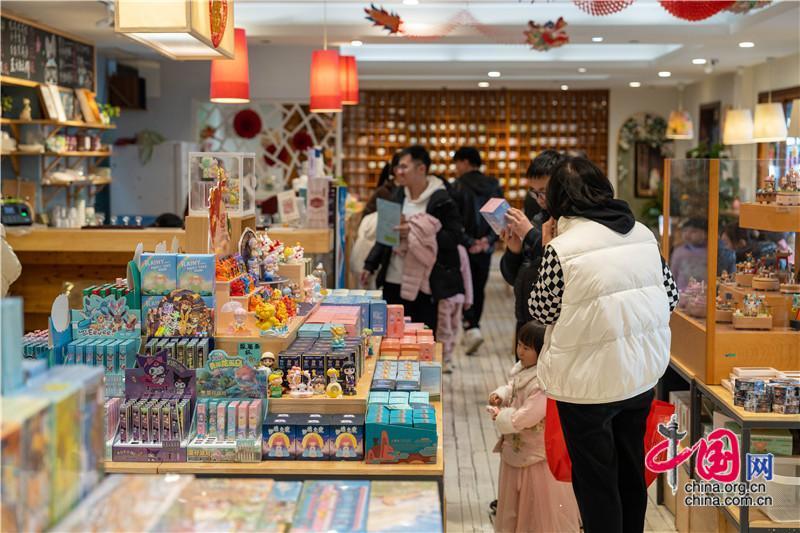 姑蘇繁華間,是江南新卷。繡娘絲綢、周禮、江南贊、鄭師傅等文創(chuàng)國潮、江南非遺品牌店“龍”重入駐,家家入得“國貨大拜年”鏡頭。