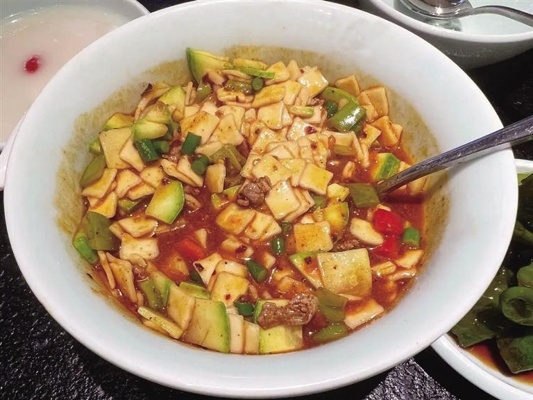有固態(tài)和液態(tài)兩種形式,酸甜麻辣搭配油潑辣子,直接擊穿饑餓。蘭州炒面片,面片也是蘭州人喜歡的家常面之一,面片分帶湯和不帶湯的,不帶湯的稱炒面片,蘭州炒面片也是一道風(fēng)味獨(dú)特的美食,無論是大街小巷還是酒店飯館都有它的一席之地,面片炒的柔韌筋道,番茄炒出的湯汁兒酸酸甜甜,多種蔬菜炒出的營養(yǎng)美味,秘制油潑辣子的香,酸甜麻辣香都集齊了,再搭配上筋道的牛腱子肉、虎皮辣椒,麻辣香美可謂一絕。