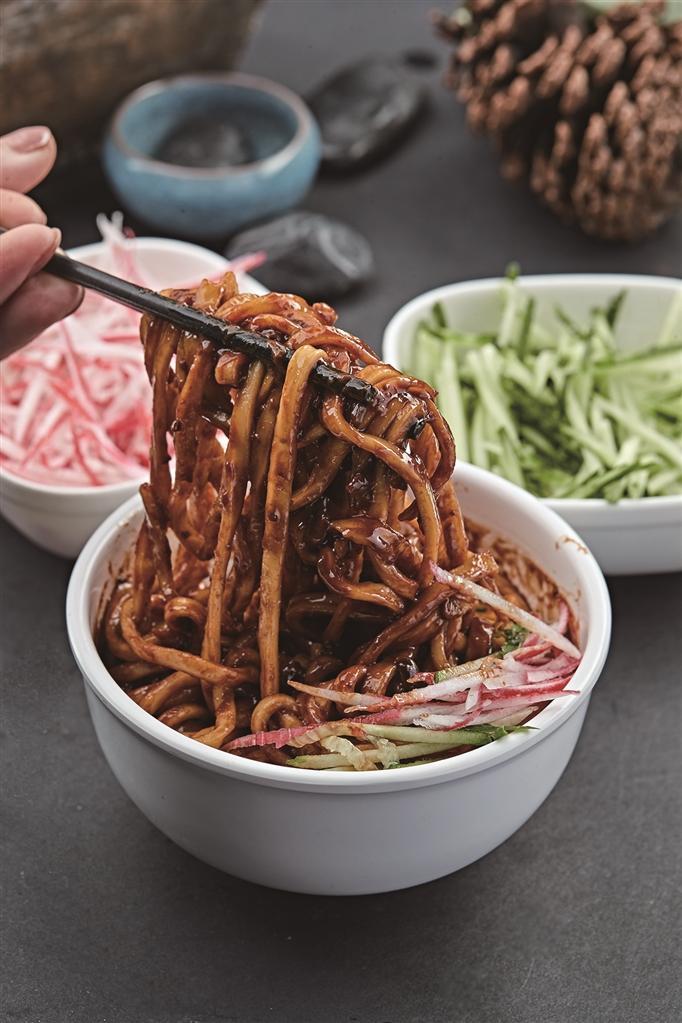 和老北京炸醬面相比,蘭州炸醬面雖然少了時(shí)令蔬菜,但是肉醬分量很足,這絕對(duì)代表了蘭州人的實(shí)在和“碳水之都”的誠意。一口裹上醬汁的面條可以直接“擊碎”饑餓。蘭州人做炸醬用現(xiàn)成的面醬加上肉末、蔥等作為主料,再配以農(nóng)家常見的蔬菜丁,把肉末上鍋烹炒后放入蔥末,再添加調(diào)料炒到半熟加入適當(dāng)?shù)乃每旎馃?,炸醬中加淀粉勾芡使炸醬變得柔滑濃香,再配上筋道的手工拉面澆上炸醬,加上辣椒油,淋一點(diǎn)醋那就濃香四溢了。