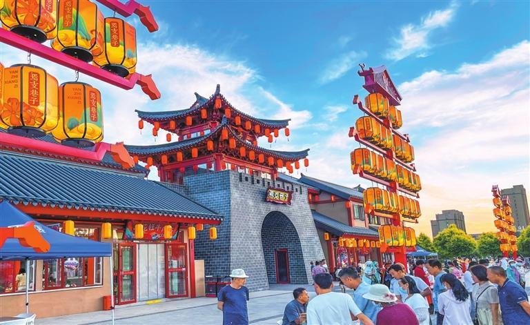 夏日的傍晚,這里格外熱鬧。步入巷內(nèi),穿過仿古牌坊,行走在青石板路上,經(jīng)過新中式仿古的巷子,寬敞的街道兩邊都是仿古的建筑,曲徑通幽處,美食坊,手工作坊,酒吧街,一字兒鋪排開,小攤上當(dāng)?shù)刈灾频纳介狻⑥r(nóng)民自己種的各種蔬菜、自制的各種小工具、精美小籮筐、葫蘆瓢等好多物品勾起了兒時(shí)的回憶。