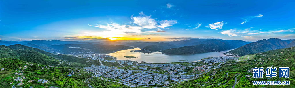 朝陽映襯下的江畔小城綏江,水清岸綠景美(10月23日攝)。新華網(wǎng)發(fā)(曾三東 攝)