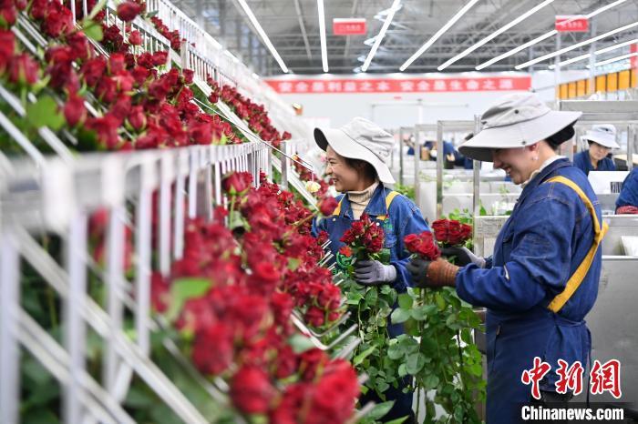 近年來,當?shù)靥岢?ldquo;打造魅力花都、建設公園城市”,聚焦“浪漫經(jīng)濟”,大力發(fā)展鮮切花產(chǎn)業(yè)。交通便利、人力資源富集是吸引這座“超級玫瑰工廠”國際鮮花港落戶臨夏的主因。
