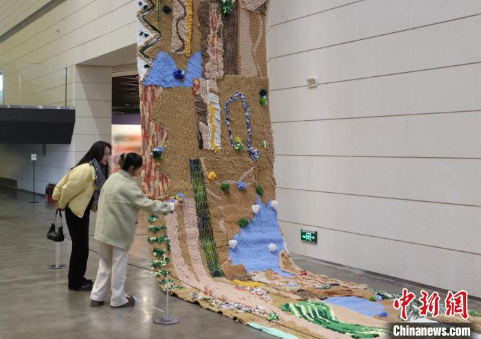 12月8日,市民在寧夏銀川當(dāng)代美術(shù)館欣賞“奔流的舞姿:藝起織造母親河”藝術(shù)展。當(dāng)日,“奔流的舞姿:藝起織造母親河”公益項目藝術(shù)展在銀川當(dāng)代美術(shù)館正式對公眾開放。該項目匯聚了黃河兩岸200余位織手的巧作,按照黃河特點和視覺審美拼接和織造,織造出一個極具視覺效果的“大河”,通過藝術(shù)的橋梁,展示奔涌黃河的優(yōu)美舞姿和不息精神,同時激發(fā)社會各界對黃河生態(tài)保護(hù)的共識與行動。中新社記者 于晶 攝