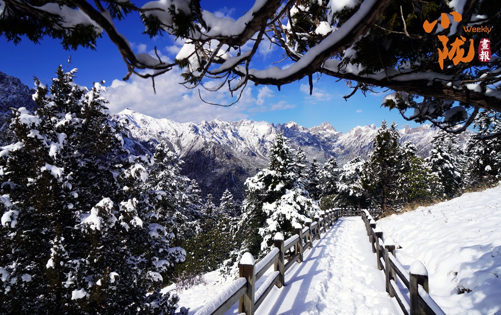 厚厚的雪層堆在樹枝上、鋪在棧道上,宛如一片潔白的海洋,別有一番風(fēng)味。