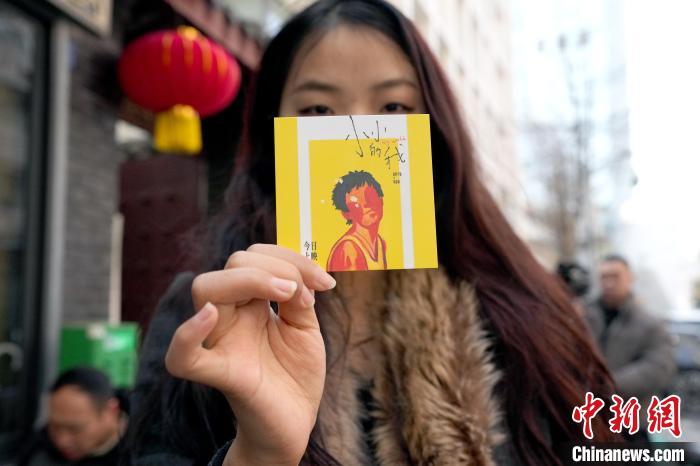 12月31日,四川成都,面館自制的紀(jì)念卡片。近日,隨著電影《小小的我》的熱映,電影中男主角劉春和與外婆吃肥腸粉的一家成都面館成為熱門(mén)打卡點(diǎn)。中新社記者 安源 攝