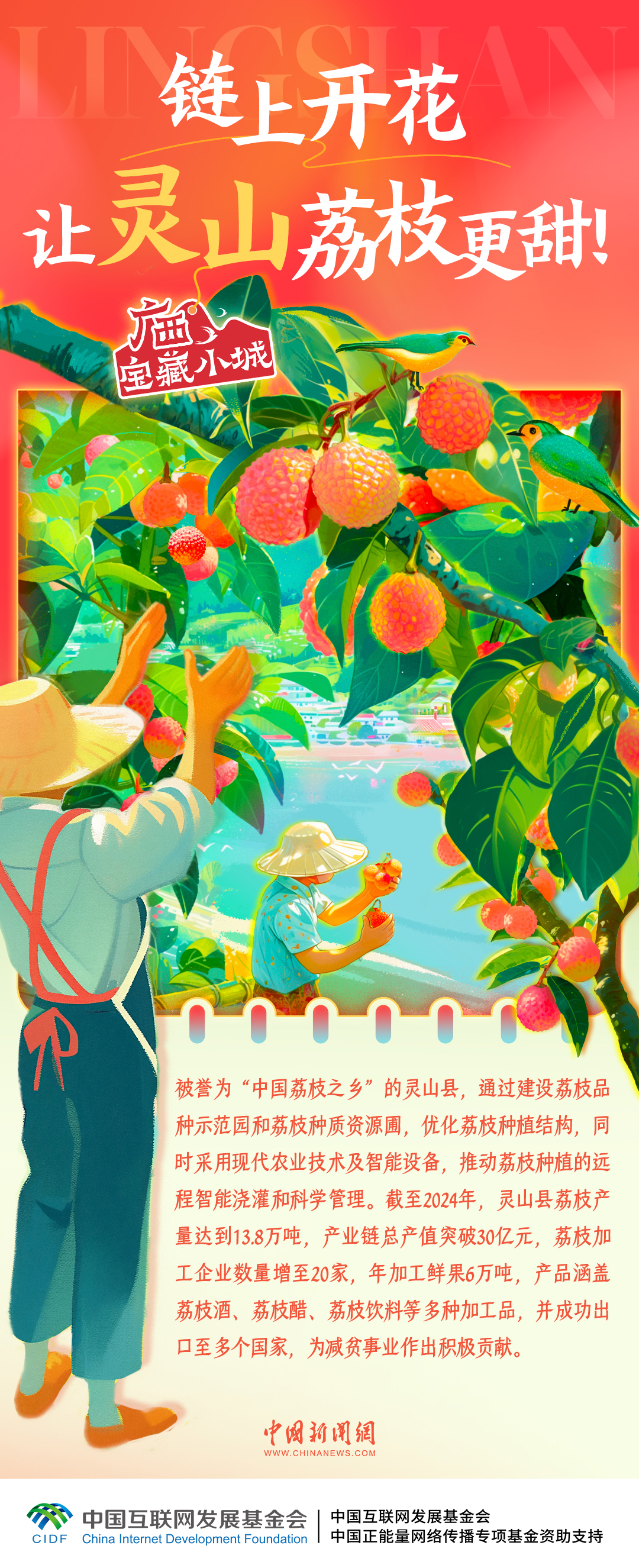 被譽為“中國荔枝之鄉(xiāng)”的靈山縣,正以創(chuàng)新之姿引領現(xiàn)代果業(yè)發(fā)展浪潮,打造從鮮果到深加工的完整產業(yè)鏈,多元產品暢銷海內外,實“荔”出圈。一起走進廣西寶藏小城靈山,感受荔枝產業(yè)的智慧轉型↓↓↓