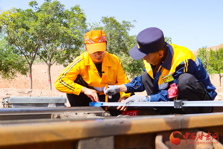 “道岔、絕緣接頭和小半徑曲線是我們?nèi)粘8邷匮膊榈闹刂兄兀绻麢z查不到位,有時候幾毫米都可能影響軌道電路或道岔搬動,進而影響安全運輸,所以必須做到一絲不茍,絕不能讓設(shè)備帶‘病’堅守。”在檢查到絕緣接頭和道岔尖軌時他們檢查的格外仔細。