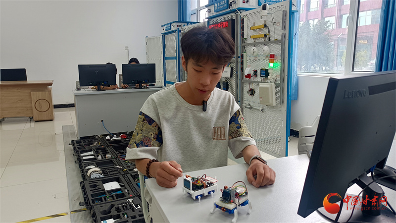 培黎職業(yè)學(xué)院信息技術(shù)學(xué)院學(xué)生唐俊杰和他的創(chuàng)新團(tuán)隊(duì)最近組裝了兩只機(jī)器狗,通過語音遙控可以實(shí)現(xiàn)指令輸出,達(dá)到陪伴、互動(dòng)的目的。唐俊杰說,“手腦并用、創(chuàng)造分析”鼓勵(lì)他們要理論聯(lián)系實(shí)際,以動(dòng)手能力讓圖紙變成現(xiàn)實(shí),機(jī)器狗是他們的在實(shí)踐課程中不斷創(chuàng)新探索而來。