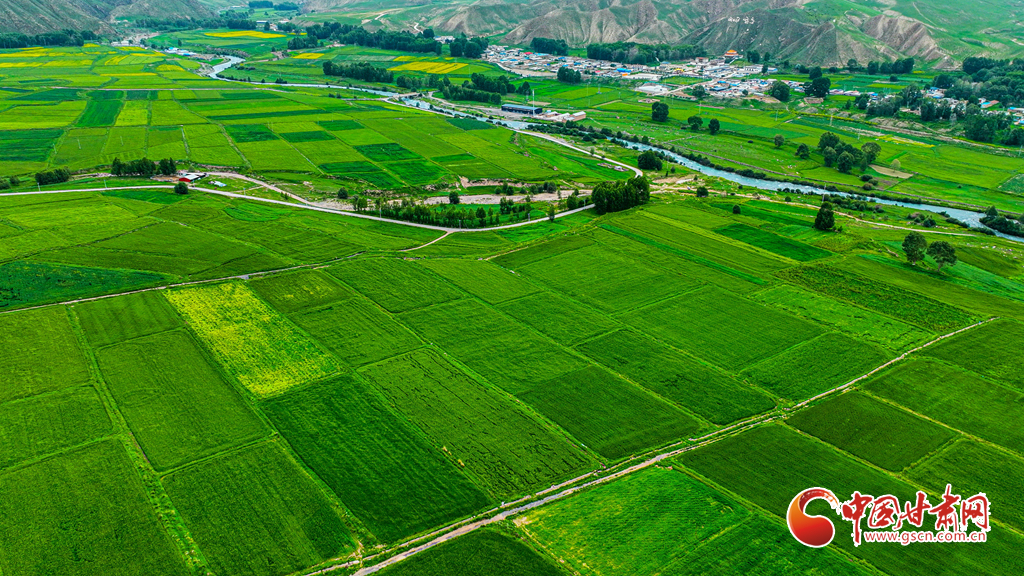 7月14日,一場小雨過后,張掖市肅南裕固族自治縣皇城鎮(zhèn)泱翔片區(qū),萬畝麥田泛黃、油菜花盛開如金。微風吹拂,麥浪翻涌花香浮動。遠眺祁連山巍峨聳立,近觀民居錯落有致,構成一幅和諧的畫卷。