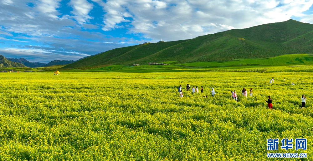 連日來,位于祁連山下的甘肅省張掖市民樂縣扁都口景區(qū)萬畝油菜進(jìn)入盛花期。金黃的油菜花海與草原綠野相連,空氣中彌漫的淡淡花香,醞釀山川,醉了游人。新華網(wǎng)發(fā)(王將 攝)