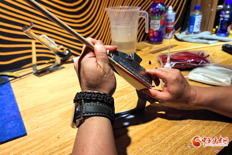 2011年,還是大學生的謝建戈在百度貼吧結識了山東臨沂“高氏傳統(tǒng)弓箭”非遺傳承人高超。囊中羞澀的他提出“先貨后款”,高超被這份赤誠打動,寄來第一套玻片弓料。一個月后,生活費一到賬,他第一時間把錢打了過去——網(wǎng)絡那端的高超從此記住了這個甘肅小伙。2012年,他做出人生第一把玻片弓。
