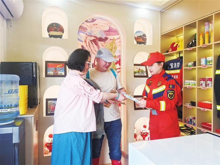 敦煌市消防救援大隊(duì)“九色鹿”女子服務(wù)隊(duì)在景區(qū)開(kāi)展消防安全動(dòng)態(tài)巡查。
