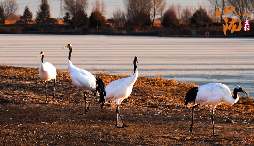 陽光灑在冰面上,晶瑩閃亮。十多只丹頂鶴翩翩起舞,飄逸的飛翔,優(yōu)雅的舞姿,輕盈的腳步,用最純粹的姿態(tài)演繹著生命的禮贊。